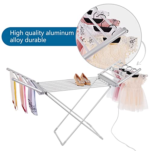 - Heated Clothes Drying Rack: Heated clothes airer saves energy and is a great way to dry clothes indoors. Just plug it in, and the heating wand gently heats up to dry wet clothes quickly and easily. There are 18 drying bars, including heated wings for extra drying space