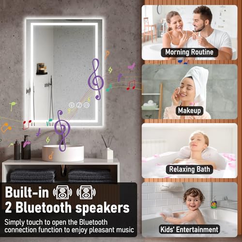 - 【Bluetooth Speaker】Built-in Bluetooth 5.0 speaker with dual-channel stereo and 360-degree surround sound. Effortlessly connect your phone to the mirror via Bluetooth and enjoy an immersive music experience while showering, without worrying about water damage to your phone