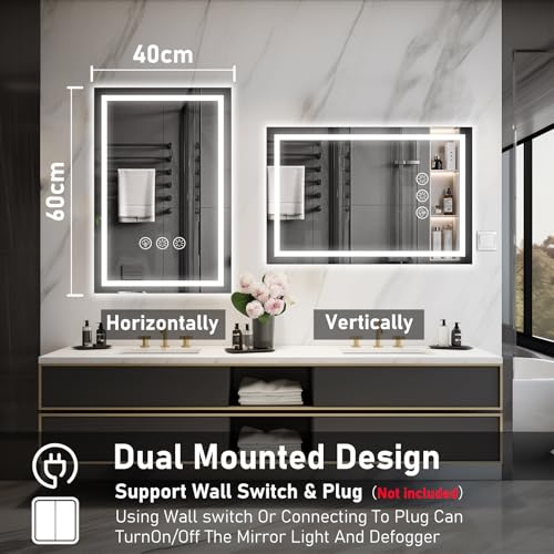 • 【2 Installation Options】 This wall-mounted LED mirror can be installed using a wall switch or hard-wired. Wall switch installation is simple with clear instructions and videos, while hard-wired installation is recommended to be done by a professional electrician