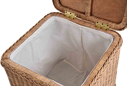 Rattan Laundry Basket Laundry Chest Storage Box with Lid Laundry Hamper Seat Chest (Square, Vintage Brown)