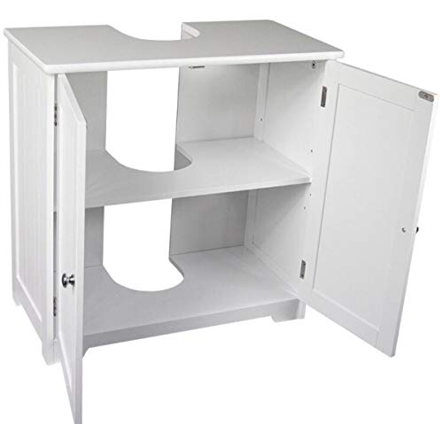 - MATERIAL: under sink bathroom storage is made of high quality Medium-density fiberboard (MDF) with painted finish. It gives protection against the damage caused by humidity and chemicals for long lasting use.