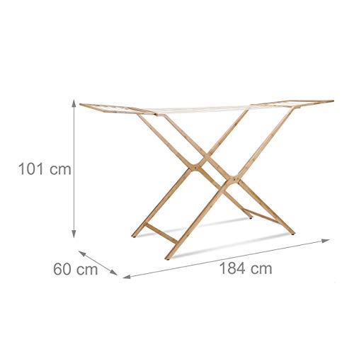 Relaxdays Bamboo Clothes Dryer, Folding Clothes Horse with 13 m Drying Length, Airer Dimensions HWD 101x184x60 cm, Natural Finish