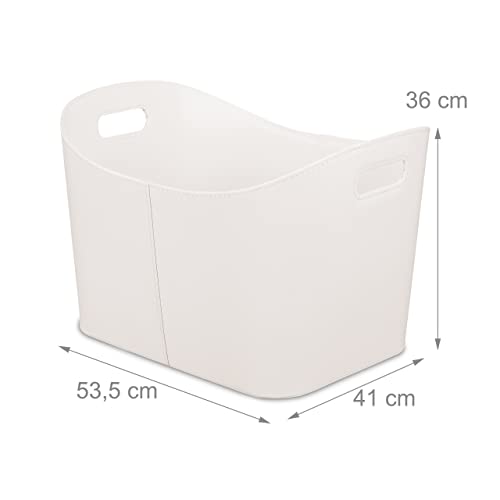 Relaxdays Faux Leather Basket, Sturdy Firewood Container with Handles, for Laundry, Toys, etc, 36 x 53.5 x 41 cm, Creme