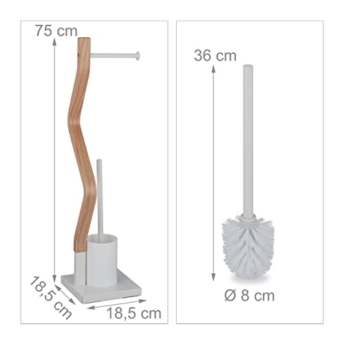 Relaxdays WC Accessories Set, Standing Toilet Paper Holder, Replaceable Brush & Holder, 75×18.5×18.5cm, White/natural