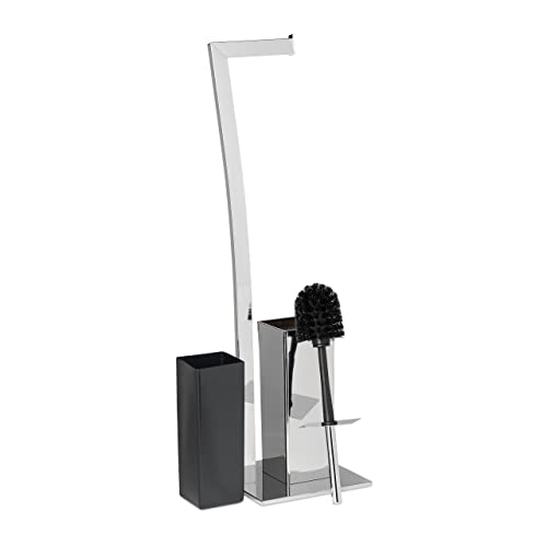 Relaxdays WIMEDO Toilet Brush and Holder, Size: 71 x 20 x 20 cm Toilet Paper Holder in Stainless Steel, Standing, Silver