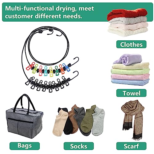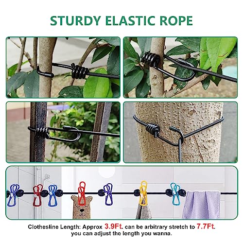 - [Absolute Advantage] The rope is about 0.5cm thick, elastic and retractable, easy to carry, easy to fold, does not take up space, non-slip design with locator beads, hooks and clothespins, strong clamping force, used to hang towels, diapers, underwear, socks, blankets and other different types of clothes, no need to worry about being blown away by the wind, and the clamping force is strong enough.