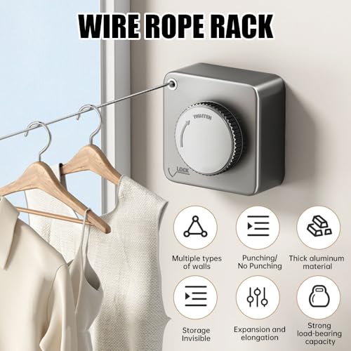 • 【Easy Installation】Choose between Glue Mounting for indoor use or Drill Mounting for outdoor use. Installation accessories are included, making it easy to set up your indoor washing line or outdoor drying station wherever you need it. Whether you’re looking to save space indoors or create a functional outdoor laundry setup, this retractable washing line makes installation a breeze.
