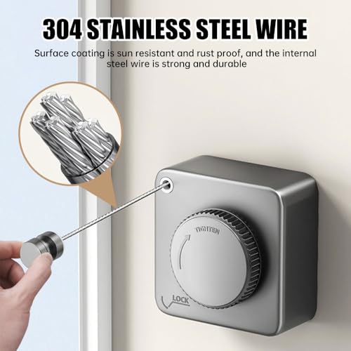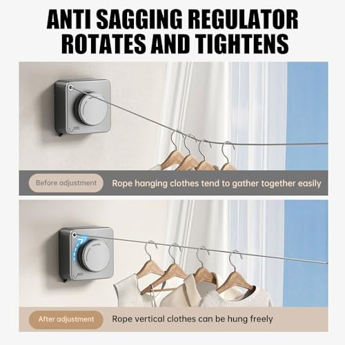 • 【Heavy Duty and Durable】Built with robust, waterproof, and rust-proof materials, this retractable washing line withstands outdoor conditions while ensuring long-lasting use. Whether you're using it as an indoor clothes line or hanging laundry outside, it is designed to handle heavy loads and endure the elements, providing reliable performance year-round.