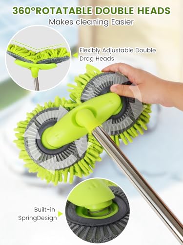 - BUILT-IN SPRING DESIGN: Different angles can be adjusted freely, the brush head fits the car surface better, and is more suitable for cleaning irregular surfaces. The car wash mop has an adjustable long handle, which can be easily adjusted to any length, effectively cleaning corners and saving a lot of cleaning time