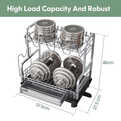 - Save Your Kitchen: 2-tier dish drying rack design using vertical space without costing more countertop space making it very convenient. The top layer of drainers for the kitchen sink can store 15 plates of different sizes and depths and 5 cups, the bottom layer can hold up bowls, pots, and bottles, plus a cutting board holder and a utensil holder. The size is 17.8(L)*12.6(W)*14.3(H) inch / 45.2(L)*32(W)*36.3(H)cm.