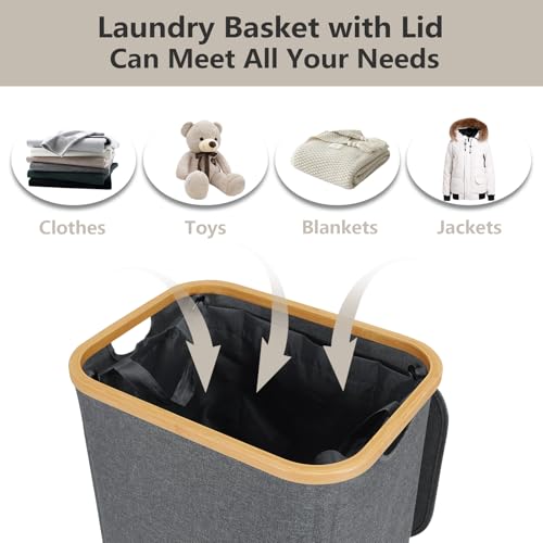 - Dustproof Lid & Removable Bag: The laundry hamper with lid could conceal smelly clothes and keep your dirty laundry out of sight. laundry basket with lid help keep your clothes neat and tidy without dust. Laundry basket includes a removable bag for easy transport from the hamper to your washing machine.