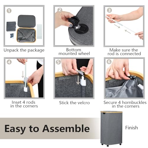 - Stable Support Rods & Collapsible Design: Collapsible laundry baskets with 4 stable support rods, it can stand up straight. Don't worry about collapse or distortion. When not in use, you can fold this laundry basket with wheels and store it in a drawer and do not take up any space.