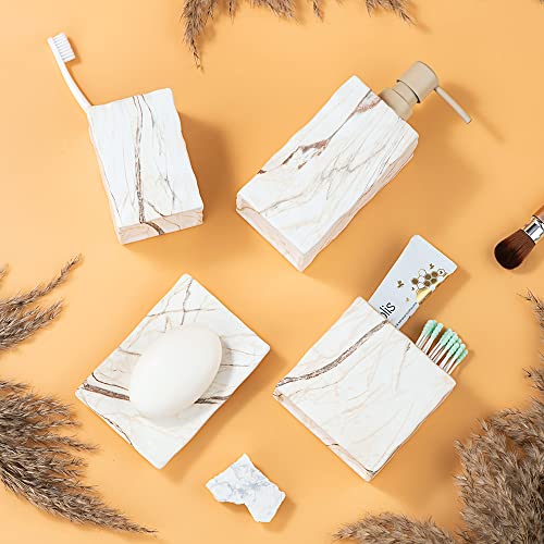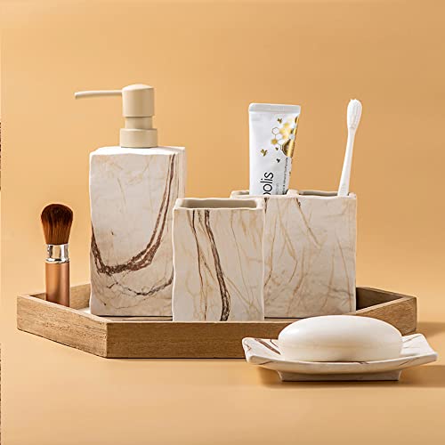 RQYIXI Ceramic Bathroom Accessory Set Complete 4 Pieces Retro Style Soap Dispenser & Toothbrush Holder Sets (Marble Brown)