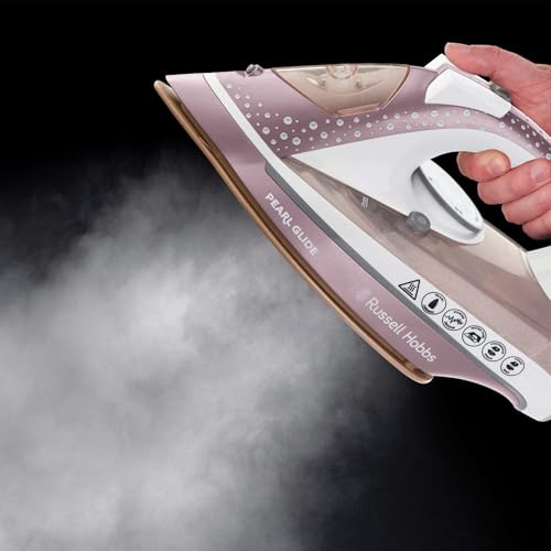 Russell Hobbs Pearl Glide Steam Iron, Pearl Infused Ceramic Soleplate for smoother glide, 315ml Water Tank, 150g Steam Shot, 40g Continuous steam, Anti-drip & Anti-calc function, 2m Cord, 2600W, 23972