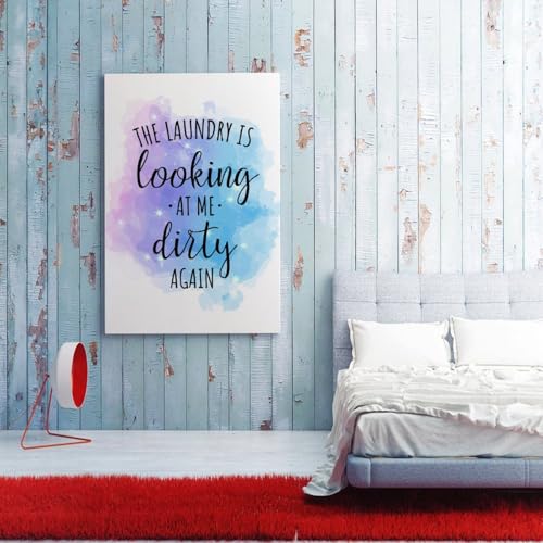 Quotes Canvas Wall Art 8x12in,The Laundry Is Looking At Me Dirty Again Canvas Print Wall Artwork Ready to Hang Rustic Wall Plaque Poster for Home Office Living Room Bedroom Bathroom Decoration