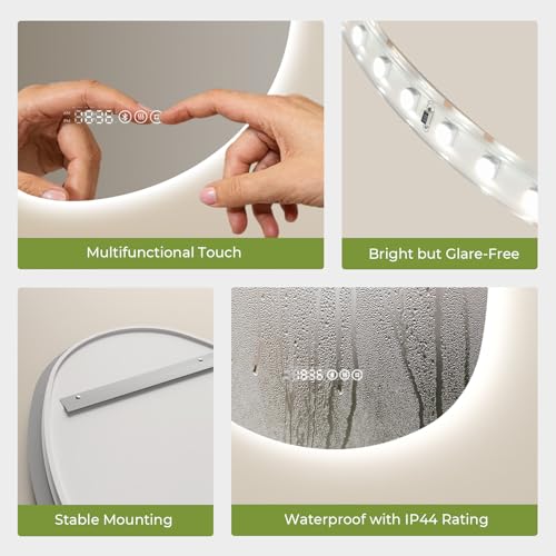 • Durable and Safe: Crafted from 5mm tempered glass, this bathroom mirror is 3 times stronger than standard glass, offering explosion-proof safety. With an IP44 waterproof rating, it is built to withstand the humid conditions of your bathroom while ensuring long-lasting performance and protection against rust and corrosion.
