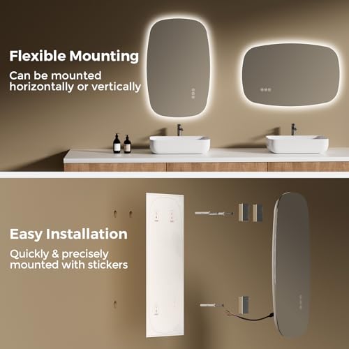 - Flexible Installation – S'AFIELINA LED bathroom mirror can be mounted horizontally, vertically, or diagonally, adapting to various room layouts and styles. The included positioning stickers help you find the right spot during installation, ensuring stable and hassle-free mounting.
