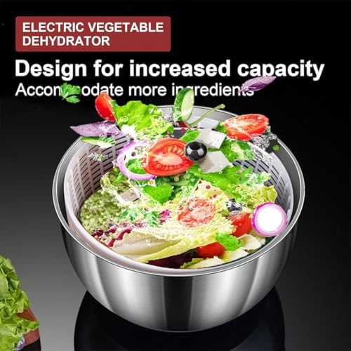 Salad Spinner Large, 4.8 L Stainless Steel Vegetables Washer Dryer, Electric Household Fruit Dehydrator Drainer, Fruit Vegetable Strainer Spinner, Non-Slip Base