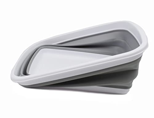 SAMMART 10L Collapsible Tub – Foldable Dish Tub – Portable Washing Basin – Space Saving Plastic Washtub (White/Grey, 1)