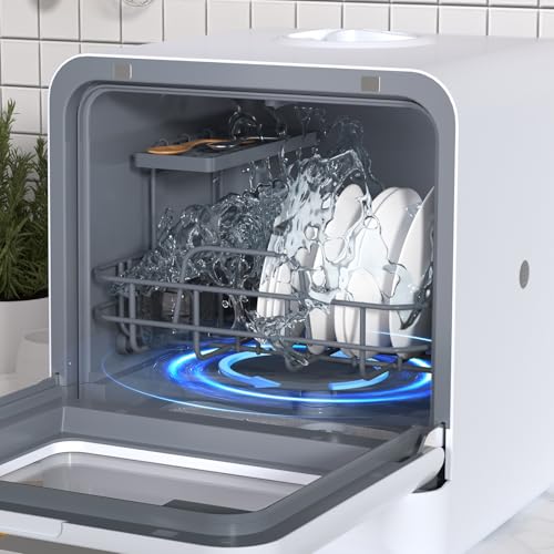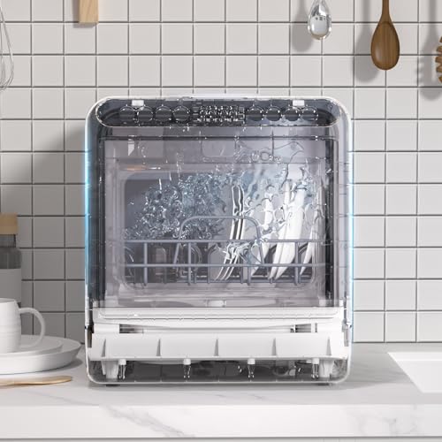 Saterkali Mini Dishwasher Countertop with Steam Sanitize & Quick Connect Faucet Adapter – 5L Removable Water Tank, 75℃ Hygiene Wash, Energy Monitoring Display, Perfect for Studio Apartments (40-Pie