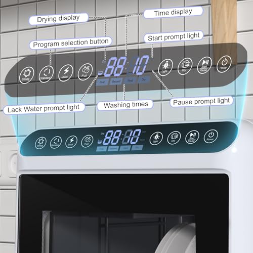• 5 Smart Programs + LED Display​​ – Choose Heavy, Normal, Delicate, Quick (28 mins), or Fruit modes. Enjoy air-dry efficiency, delay start (2-12 hrs), and real-time progress tracking LED touchscreen and lighted window.