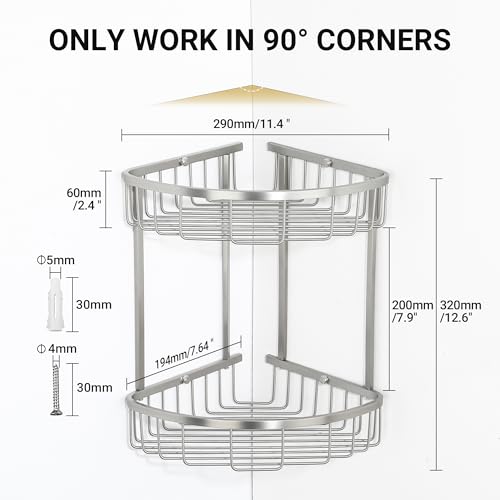 SAYAYO Corner Shower Caddy Basket, SUS304 Stainless Steel Bathroom Shower Corner Shelves Basket Organiser Storage, Brushed & Glaze Finish