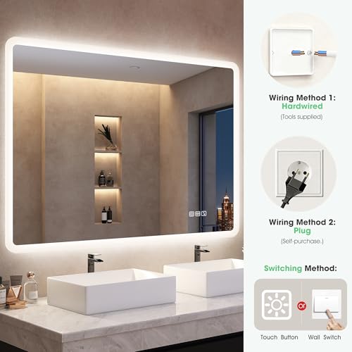 - [Easy Installation, Horizontal & Vertical Mounting] – S'bagno bathroom mirror is easy to install and can be hung horizontally or vertically. For detailed installation steps, refer to the instruction manual and product detail page. The wall mirror features a hard-wired design and can be operated via a wall switch. For your safety, it is advisable to engage a qualified electrician for installation.