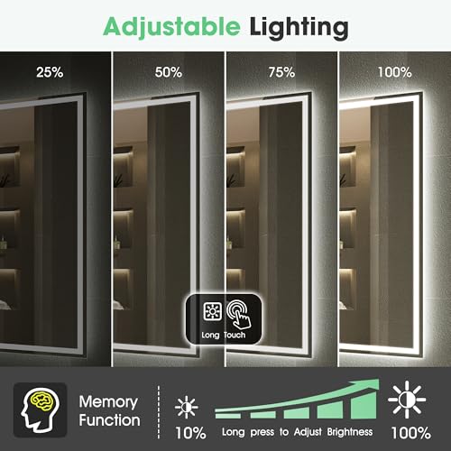 • ✨【3 Lighting Modes & Dimmable & Memory Function】Adjust colour temperature (cool, natural, warm) with a short press and brightness (10%-100%) with a long press. LED lights are energy-efficient and last up to 50,000 hours. S'bagno LED bathroom mirror has a memory function that remembers the last light setting, so you don't have to reset it every time you use it