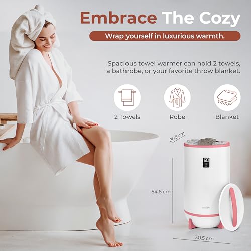 - Convenient & Spacious – Fits two large bath towels or blankets comfortably. Ideal bucket towel warmer for families or shared bathrooms to enjoy warmth together.