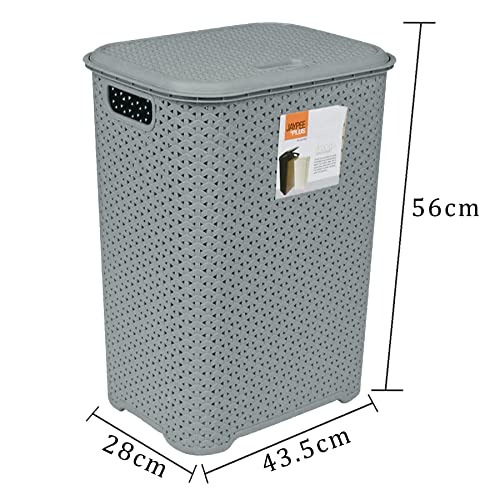 (Set of 2) 65L Litre Laundry Basket with Flip Lid Knit Design Plastic Hamper Washing Baskets Freestanding Sturdy Tall Laundry Sorter Bin Storage Basket Linen Clothes Laundry Hamper Box (Grey/Silver)