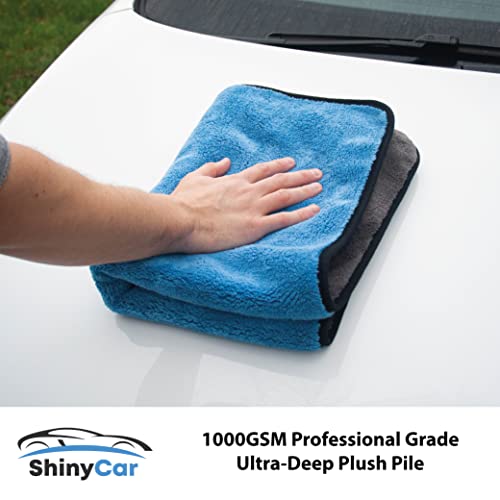 ShinyCar® UK: Premium XL Car Drying Towel, 75×55cm – Ultra Plush 1000GSM Deep Pile Microfibre Drying Cloth, Super Absorbent, Soft & Streak-Free. A Scratch-Safe Detailing Alternative To Chamois Leather