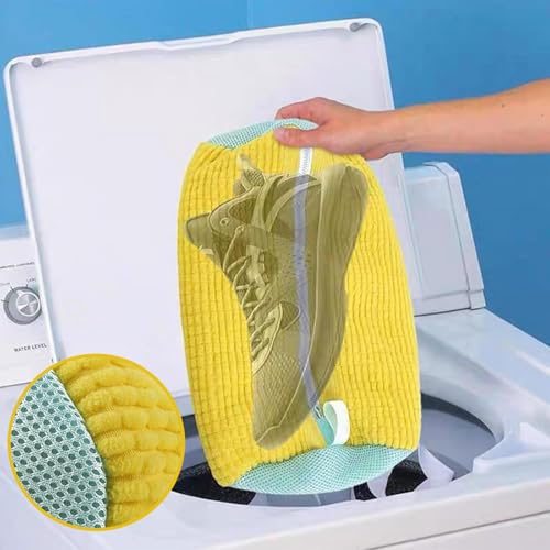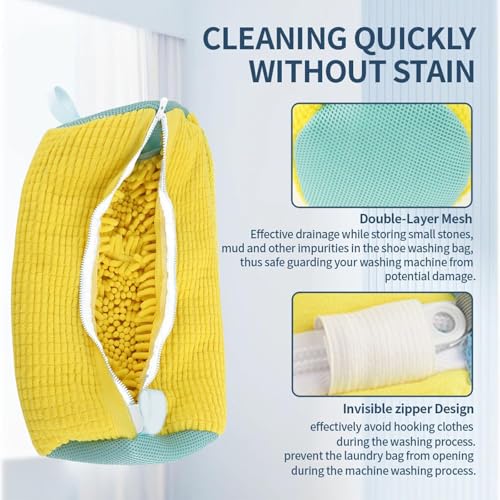 Shoe Washing Bag, Shoe Washing Machine Bag, 2 Pcs with Zipper Hook Reusable Yellow Shoe Bag for Washing Machine, for Washing Machine and Dryer, Travel Storage