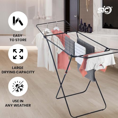 SIC Winged Clothes Airer | Large Clothes Drying Rack w/ 18m Space | Foldable Laundry Hanger Dryer Rack | Heavy Duty Clothes Horse Stand | Indoor Outdoor Air Clothes Dryer | Compact Washing Dryer Rack