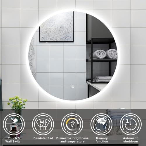 simple bathrooms 1000x1000mm Round LED Bathroom Mirror with Demister Pad | Backlit 3 Colors Temperature, IP44, Touch Sensor, Wall Mounted