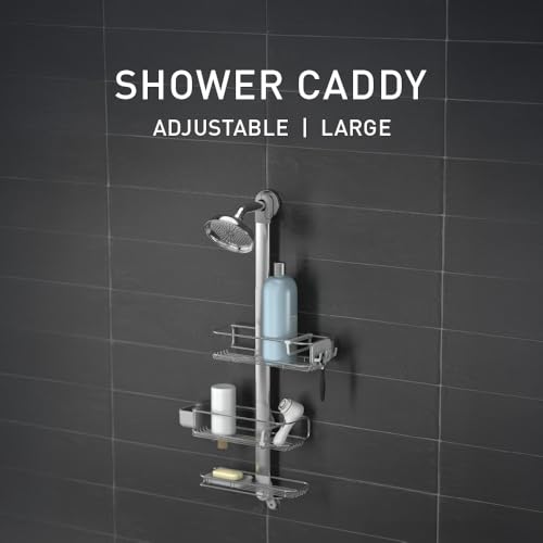simplehuman BT1099 Large Adjustable Shower Caddy, Hanging Bathroom Shelf Storage Organiser, Suction Cups, No Drilling, Rustproof, Adjustable Shelves, Storage Hooks, Quick-Dry Soap Dish