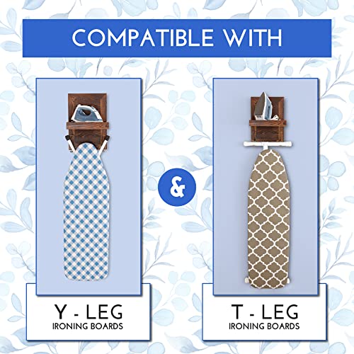 - Wooden Ironing Board Hanger: Keep ironing supplies within reach to create convenient storage and use with our beautiful, wooden iron holder wall mount. The shelf for iron is large enough to hold larger irons/steamers up to 10” x 10”.