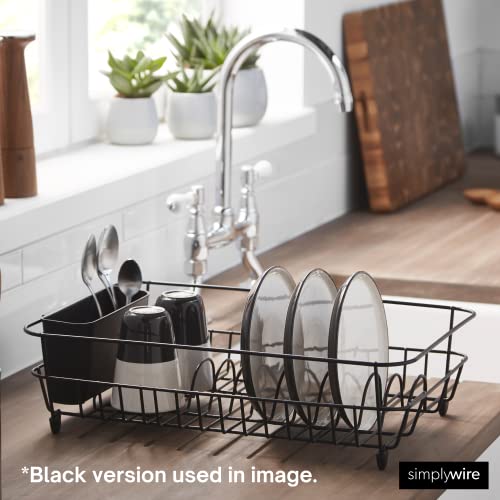 simplywire – Dish Drainer – Anti Rust Drying Rack – Cutlery Basket – White Plastic Coated Steel