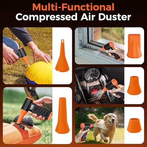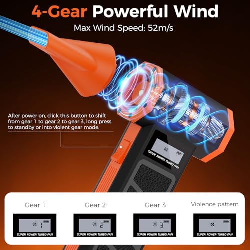 - 【Wide Application】 The super power turbo fan comes with 5 nozzles, making it suitable for a variety of cleaning needs, such as cleaning pc, keyboards, or other electronic devices. It also serves well for home cleaning and car duster.