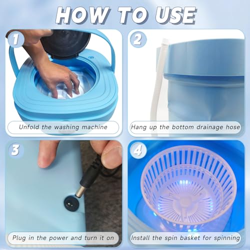 - Small Portable Travel Washing Machine, 11L Mini Folding Washing Machines with Spin Dryer for Camping, Clothes Wash Suitable for Underwear, Baby Clothes, and Small Item with Laundry Bag, Hanger