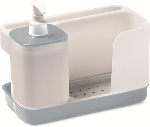 Snips Riordinello – Dish Hand Soap Dispenser & Sponge Holder, Sink Caddy Kitchen Organizer with Liquid Soap Container 400ml, Kitchen Storage Organisation Accessories 21x12x18 Made in Italy, White Grey