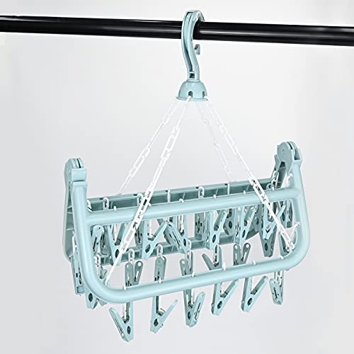 • 👍【Durable Material】The clip and drip holder are made of high-quality pp material, and 4 tightly hanging buckle chain link connects the 32 clip, is very tighen and durable. Folding Sock Dryer with 32 pegs grip very well, not fall off, not rust, without leaving marks on the beautiful clothes.