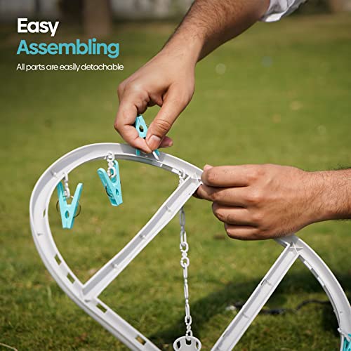 - EFFICIENT DRYING WITH 20 PEGS: The hanger comes with 20 strong pegs, ideal for drying socks, baby clothes, underwear, and towels. Its oval shape design maximizes drying space and keeps garments securely in place