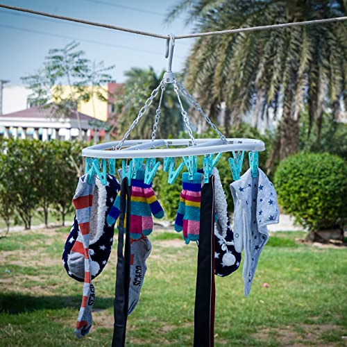 Sock Hangers for Drying with 20 Pegs | Sock Hanger for Washing Line Quick & Efficient Washing Octopus | Clothes Drying Hanger with Clips for Shoe Insoles Underwear Bras Baby Clothes | Peg Airer Dryer