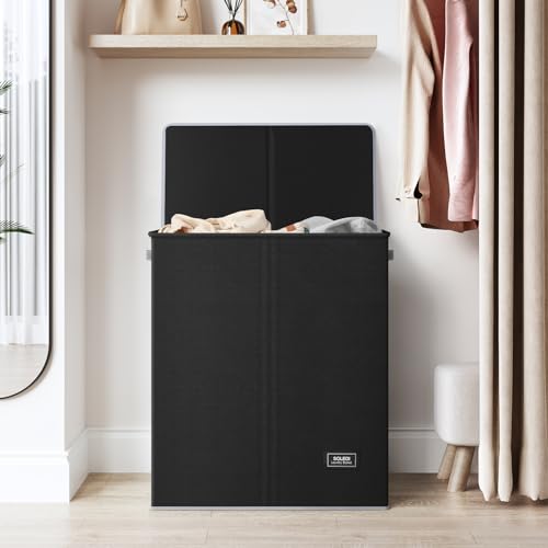 SOLEDI 145L Double Laundry Basket with Lid and Removable Bags, Large Laundry Hamper Collapsible Laundry Basket with 2 Compartment, Washing Basket for Laundry, Foldable Laundry Baskets for Bedrooms