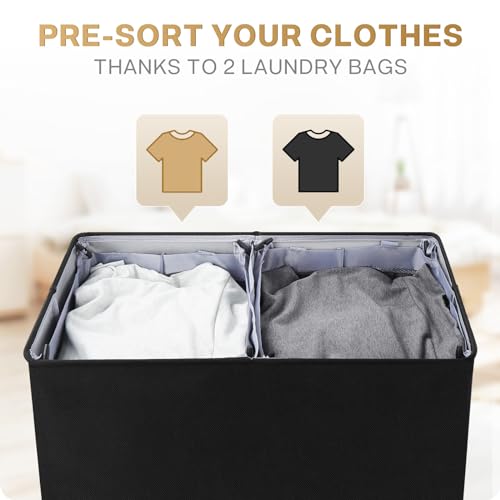 - 【Easier Laundry Work】Equipped with 2 removable laundry bag, you can remove clothes without moving the entire laundry bin. Pick up the two sturdy handles on the side of the laundry bag and carry it easily to the laundry room, making the endless laundry work as easy and simple as possible.