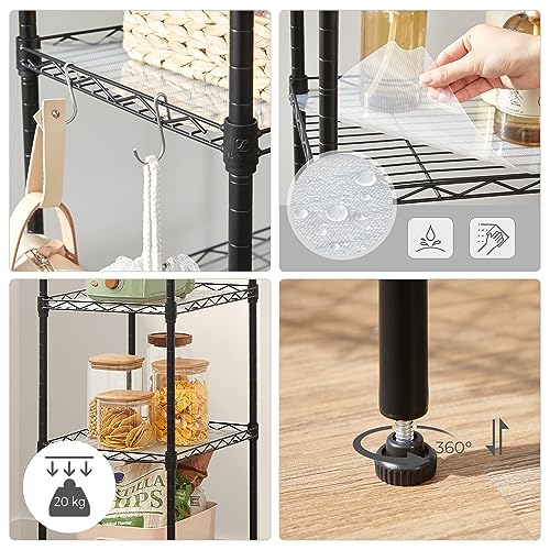 SONGMICS 5-Tier Shelving Unit, Metal Kitchen Storage Shelves, with Adjustable Wire Shelves, PP Liners, 8 Hooks, for Living Room, Garage, 30 x 40 x 121 cm, Black LGR115B01