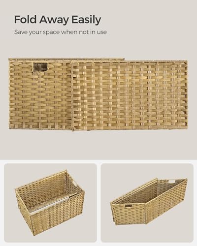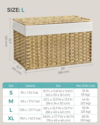 SONGMICS Laundry Basket, 105L Synthetic Rattan Storage Basket with Lid and Handles, Wicker, Foldable, Removable Liners, for Blankets, Clothes, Living Room, Bedroom, Laundry Room, Natural RST066N01