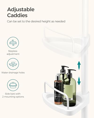 SONGMICS Shower Corner Shelf, 4-Tier Bathroom Shower Shelf, 85-305 cm Adjustable Shower Caddies, Bathroom Organiser, White BCB001A
