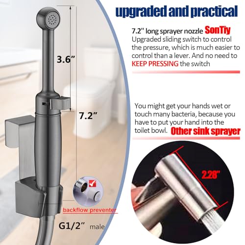 SonTiy Handheld Bidet Toilet Sprayer Gunmetal, Cloth Diaper Sprayer Bathroom Hand Held Jet Spray Bidet Attachment for Toilet with Adjustable Pressure Control, Solid Brass, 7.2" Bidet Wand