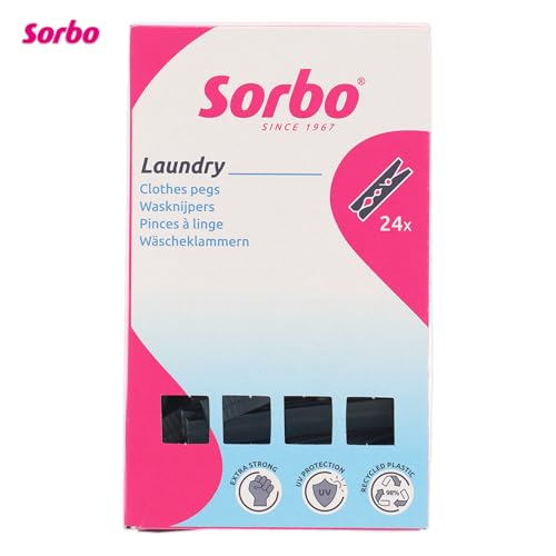 Sorbo Recycled Clothes Pegs, Extra Strong, UV Protection, Made from 98% Recycled Plastic, Anti-Slip Grip, Pack of 24